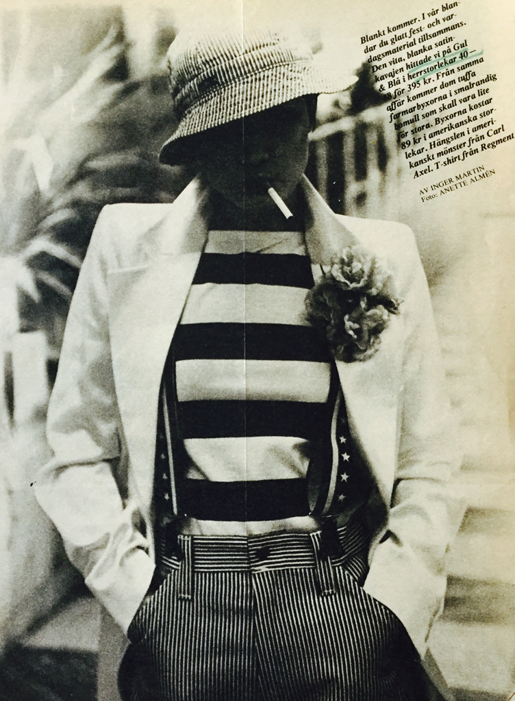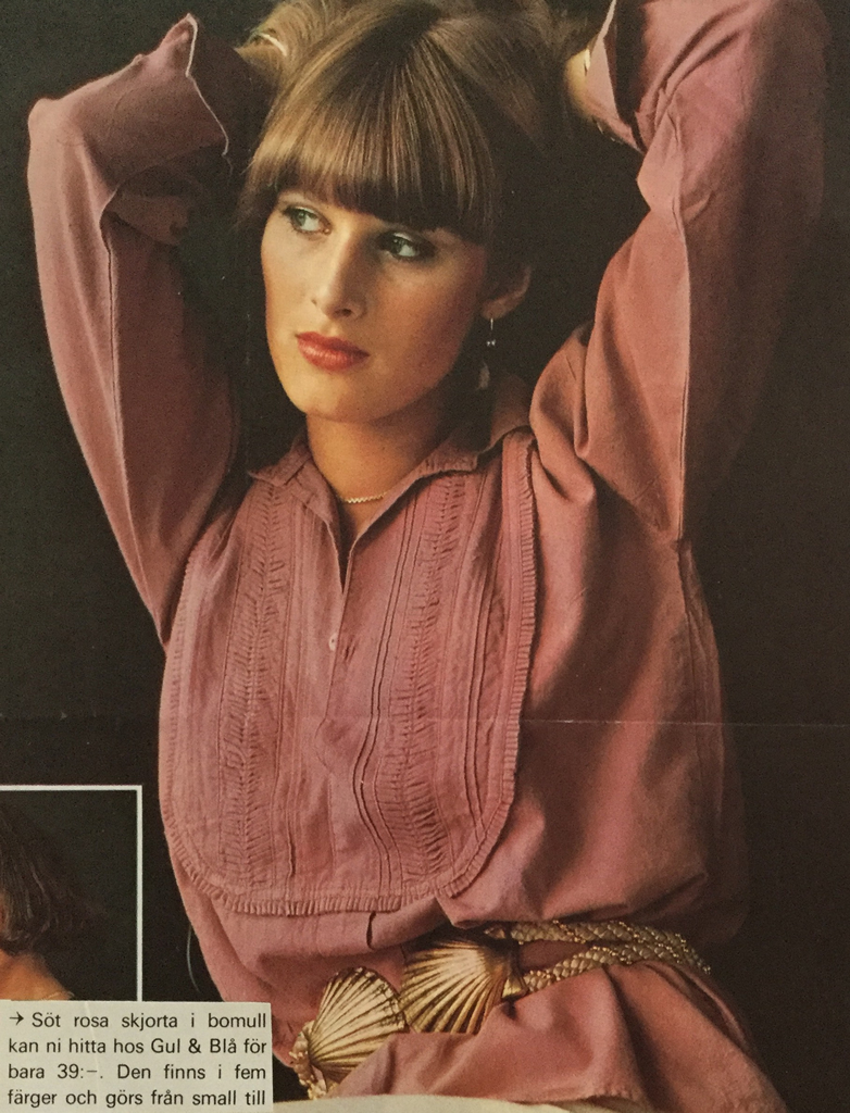 1)finns inga uppgifter. 2) Damernas Värld, Agneta Hellstedt, Svante Sjöstedt. 3-4-5) Damernas Värld. 6-7-8-9 ) Min Värld, Agneta Hellstedt, Stickan Forsberg, Carl Johan Rönn. 10) Svensk Dam T, Bie Nylund, Stig Forsberg. 11-12) Min Värld, Agneta Hellstedt, Olle Cederqvist. 13) Damernas V. 14-15) Svensk Dam Tidning. 16-17) Min Värld, Inger Moberg, Olle Cederqvist. 18) Svensk Dam T. Ewa Klingspor,Per Angre'. 19) Svensk Dam T. Bie Nylund,Robert Hansson. 20) Svensk Dam T, Inger Martin, Per Wiklund. 21-22-23) Svensk Dam Tidning. 24-25-26) Femina, Birgitta Söderhjelm, Lisa Kallos. 27-28-29) Hennes, Gunilla Myrberg, Bengt H. Malmqvist. 30) Lotta Lewenhaupt, Stig Forsberg. 31-32-33) Min Värld, Lena Bendrik, Johan Rönn. 34-35) inga uppgifter. 36-37) Femina, Anja Notini. 38-39) Lotta Hansson, Åke Sandström. 40) Damernas V, Inger Bogren, Olle Bogren. 41) inga uppgifter. 42-43-44) foto Jan Fridlund. 45-46)Hennes. 47-48) inga uppgifter. 49) Marianne Berglund, Per Wiklund. 50-51) inga uppgifter. 52-53) Hennes. 54) Femina, Gunnel Kangas. 55) Damernas Värld. 56) Hennes, Inger Bogren, Olle Bogren. 57) Femina. 58) Gunilla Wesslau, Charles Hammarten. 59-60-61) Femina, Anja Notini Wallin. 62-63-64) Damernas Värld. 65-66) D. Värld, Inger Martin, Carl Johan Rönn. 67) Agneta Hellstedt, Stig Forsberg. 68-69) inga uppgifter. 70-71) Femina. 72) Svenk Damtidning. 73) inga uppgifter. 74-75-76) Damernas Värld. 77) Femina, Kinta Nyebölle, Olle Bogren. 78) Damernas Värld, Marianne Berglund, Maggie Williams. 79-80-81) Damernas Värld. 82) Damernas V, Lotta Hanson, Anette Almen. 83-84) inga uppgifter. 85) Hennes, Inger Bogren, Olle Bogren. 86) Min Värld. 87) Inger Martin, Anette Almen. 88) Min Värld. 89) Inger Bogren, Olle Bogren. 90) Damernas Värld, Agneta Hellstedt, Svante Sjöstedt. 91-92) Damernas V. 93) Lotta Hanson Johan Rönn. 94) Vecko Revy. 95) Damernas V, Marianne Berglund, Per Viklund. 96-97-98-99) inga uppgifter. 100-101-102) Vecko Revy. 103) Hennes, Inger Bogren, Olle Bogren. 104) inga uppgifter. 105) Hemmets Journal. 106) Ann Hänke, Kertin Lundberg. 107) Agneta Hellstedt, Carl A. Nordin. 108-109-110) Vecko Revy. 111) Hemmets Journalen. 112-113-114) Vecko Revy.